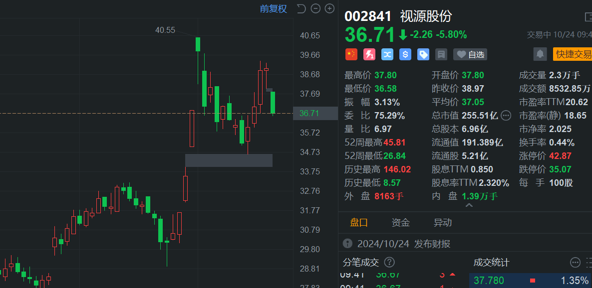 A股异动 | 视源股份跌超6% Q3净利润同比下降5.11%