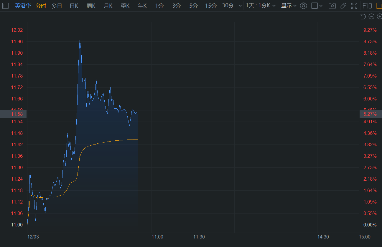 英洛华(000795.SZ)盘中曾直线拉升涨超9%,现报11.58元,总市值131.4亿元。消息上,截至2024年11月30日,公司通过回购专用证券账户以集中竞价方式已累计回购公司股份1886.97万股,占公司总股本的1.66%,最高成交价为6.00元/股,最低成交价为5.06元/股,成交总金额为1.06亿元。此外,公司收购全方科技,已完成工商变更登记。(格隆汇)