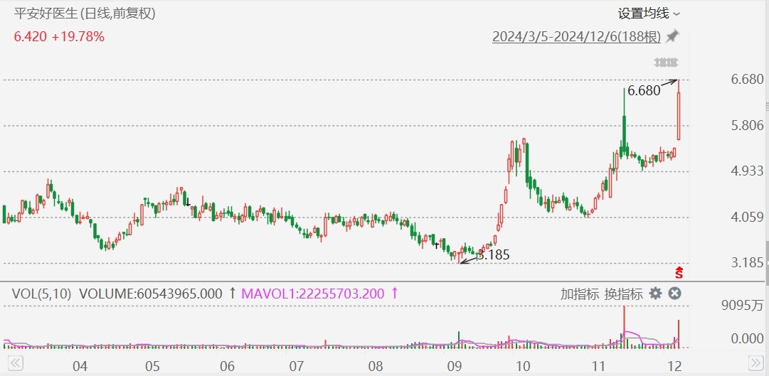 平安好医生(1833.HK)今日除特别股息9.7港元,盘中拉升一度涨超24%至6.68港元,股价创2023年11月以来新高。