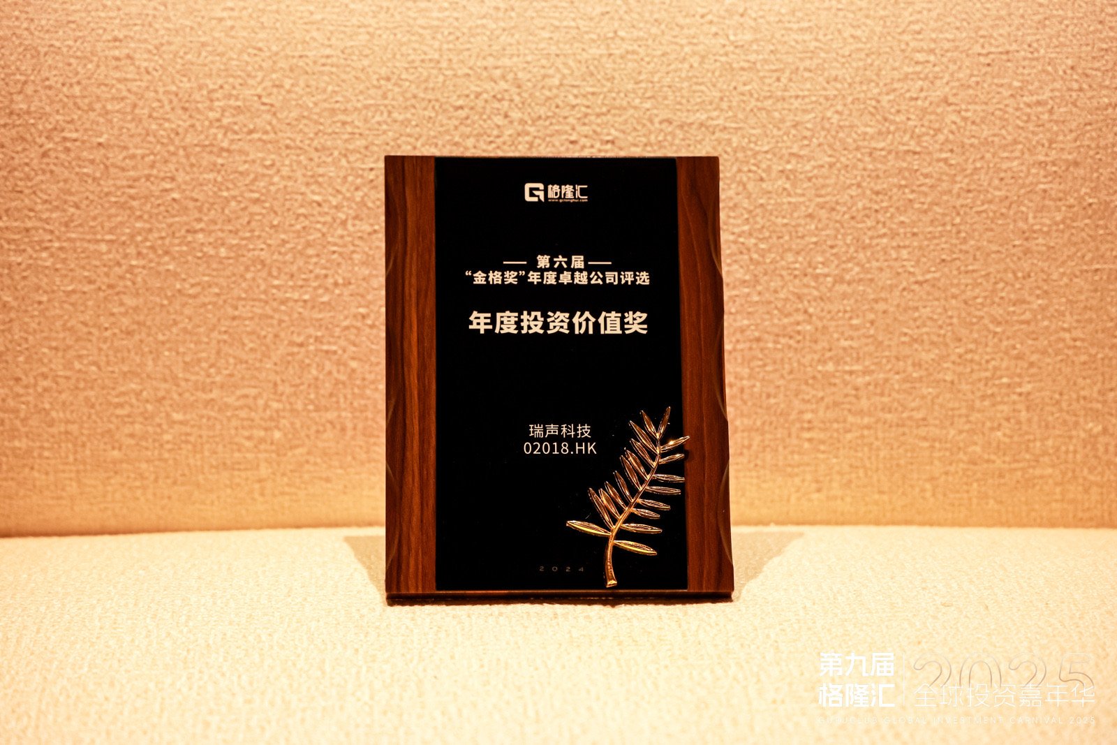 “格隆汇·第九届·全球投资嘉年华·2025”今日继续在深圳南山香格里拉酒店举行。在今日的格隆汇“金格奖”年度卓越公司评选中,瑞声科技(2018.HK)荣获“年度投资价值”奖。