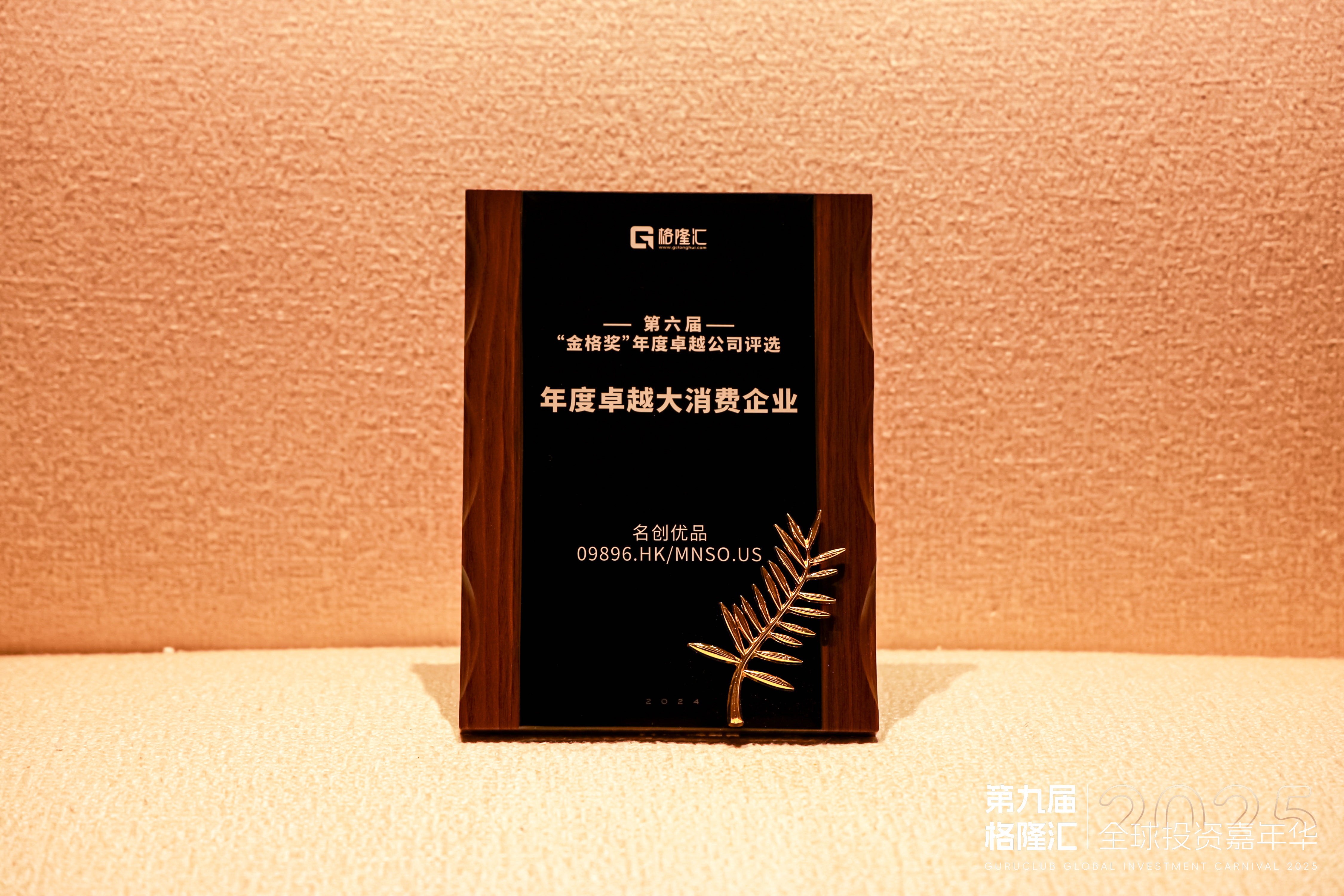 “格隆汇·第九届·全球投资嘉年华·2025”今日继续在深圳南山香格里拉酒店举行。在今日的格隆汇“金格奖”年度卓越公司评选中,名创优品(9896.HK/MNSO.US)荣获“年度卓越大消费企业”奖。