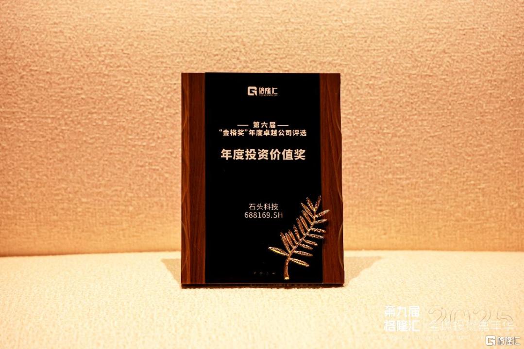 12月5日—7日,第九届“格隆汇·全球投资嘉年华·2025”于深圳盛大开幕。其中格隆汇“金格奖”年度卓越公司评选中,石头科技(688169.SH)荣获“年度投资价值奖”。