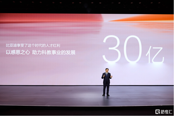 比亚迪捐资30亿教育慈善基金,助力中国科教事业发展,为中国汽车产业培养更多卓越人才,推动新能源汽车等科技领域的创新发展,为国家发展汽车新质生产力蓄势赋能,牢筑汽车强国的坚实根基。