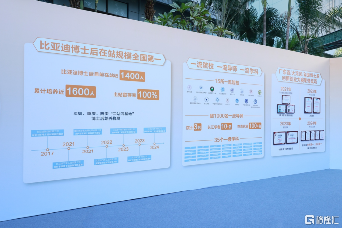 2017年,比亚迪设立博士后创新实践基地,开启博士后人才培养,将"教育接力"推进新篇章。在近7年内,比亚迪逐步形成了深圳、重庆、西安"三站四基地"的博士后培养格局,联合全国15所一流院校、35个一级学科,邀请包括3名院士、10多名长江学者在内的超1000名一流导师,累计培养了将近1600名博士后。目前比亚迪博士后在站人数近1400人,在站规模全国第一,出站留存率高达100%。这为比亚迪攀登新能源技术高峰提供了强大的人才储备。