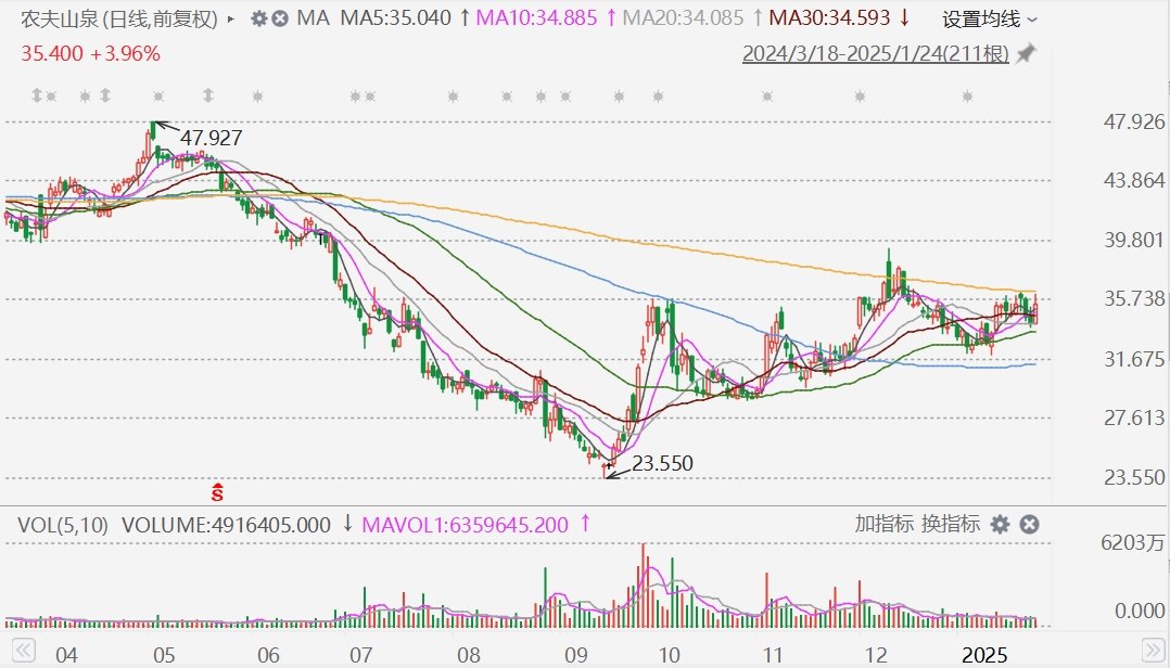 农夫山泉(9633.HK)盘中拉升,一度涨近6%,报36.05港元。消息面上,公司创始人钟睒睒周四发誓要避免价格战。