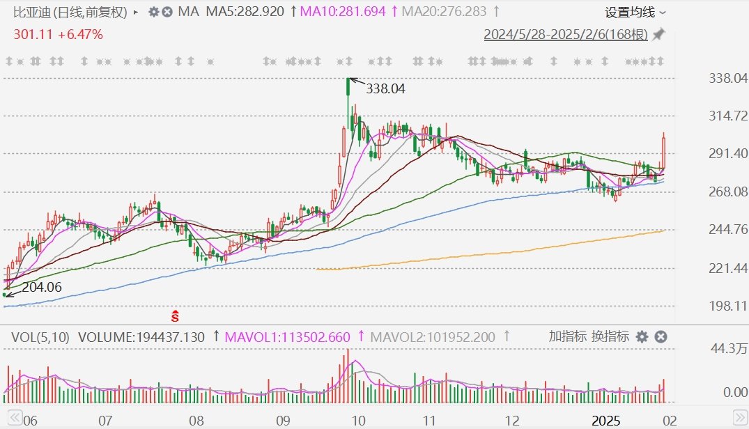 比亚迪(002594.SZ)午后强势拉升,大涨7.5%,报304.2元;港股比亚迪股份(1211.HK)涨近6%。消息面上,比亚迪将于2月10日19:30在深圳总部召开智能化战略发布会。比亚迪提出,希望通过比亚迪“天神之眼”系统,让每一个人都能畅享高阶智驾。(格隆汇)