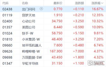DeepSeek概念股继续活跃,出门问问涨超16%,创梦天地涨超12%,心动公司、美图公司涨超10%。