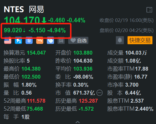 网易(NTES.US)美股盘前跌4.94%。消息上,网易刚刚公布2024年Q4净收入为267亿元,市场预期272.48亿元,同比下滑1.4%;归属于公司股东净利润为88亿元,经调整归属于公司股东净利润为97亿元。值得一提的是,2024年研发投入175亿元 ,研发投入强度达16.6%,这也标志着网易连续第五年研发投入超百亿。(格隆汇)