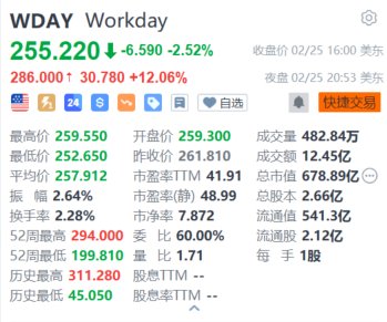 人力资源和财务软件制造商Workday(WDAY.US)夜盘涨超12%,报286美元。消息面上,Workday公布2025财年第四季度业绩,营收同比增长15%至22.1亿美元,超出分析师预期的21.8亿美元;经调整每股盈利1.92美元,亦超出预期的1.78美元。期内订阅收入为20.4亿,同比增长16%。该公司指,因应市场对人工智能工具的需求上升,新财年将会有更多的人工智能产品上市。(格隆汇)