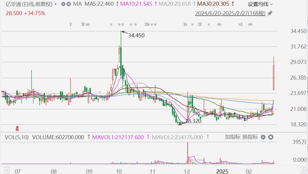 亿华通(2402.HK)跳空高开近15%后进一步走强,盘初一度涨41.84%报30港元,股价创2024年10月8日以来新高。亿华通A股停牌。