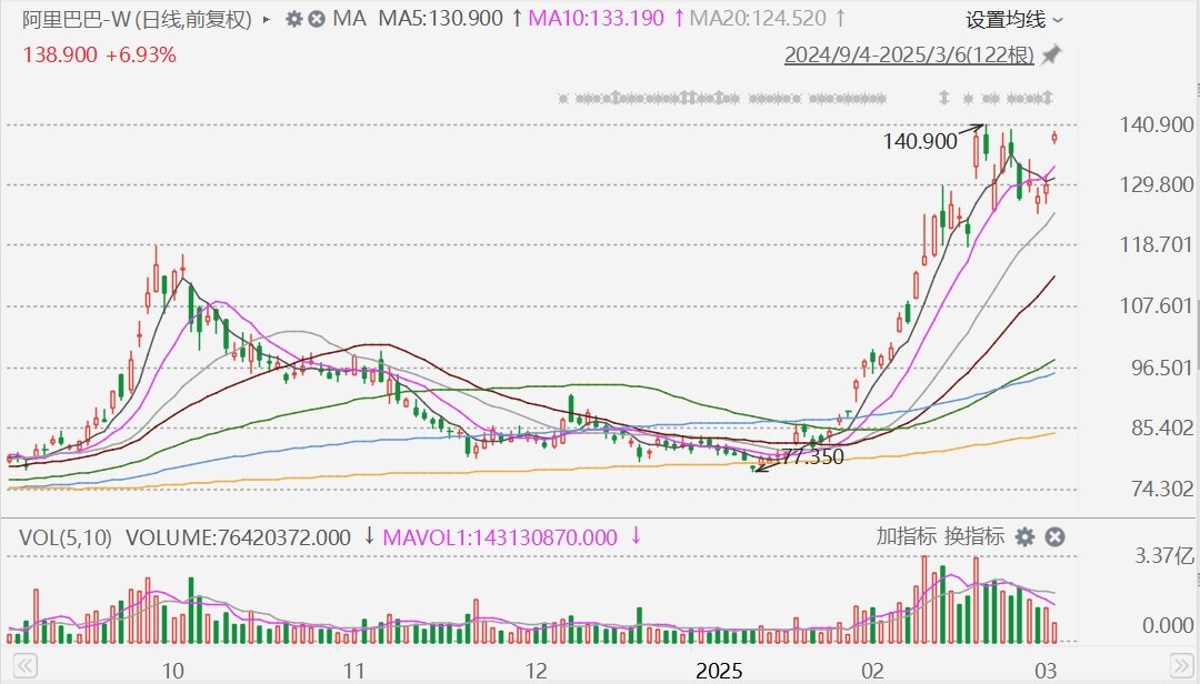阿里巴巴-W(9988.HK)拉升大涨超7%,报139.6港元。消息面上,阿里巴巴的通义千问Qwen团队正式发布他们最新的研究成果 —— QwQ-32B大语言模型!据官方介绍,QwQ-32B在仅有DeepSeek-R1约1/20参数量(320亿参数)的情况下,用强化学习,实现了性能上的惊人跨越!