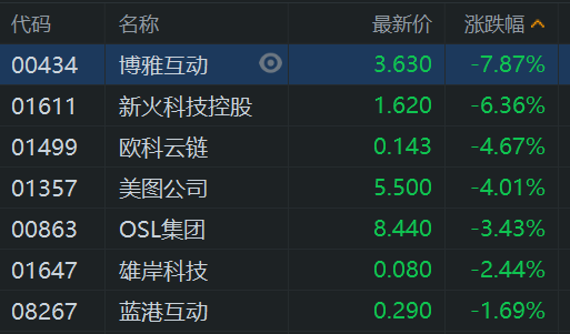 比特币跌破77000美元,港股加密货币概念股集体下跌,其中,博雅互动跌近8%,新火科技控股跌超6%,欧科云链跌4.67%,雄岸科技、OSL集团跟跌。