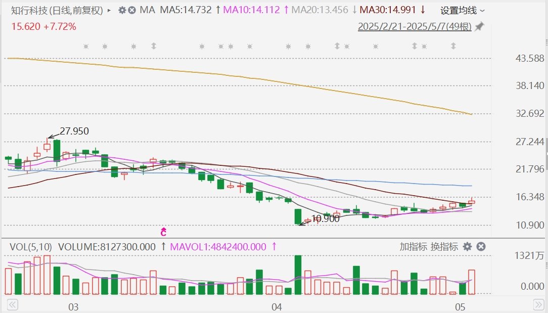 智驾核心零部件供应商知行科技(1274.HK)今日盘中放量上涨,一度涨11.45%报16.16港元,创4月2日以来新高,截至目前成交额放大至1.2亿港元。