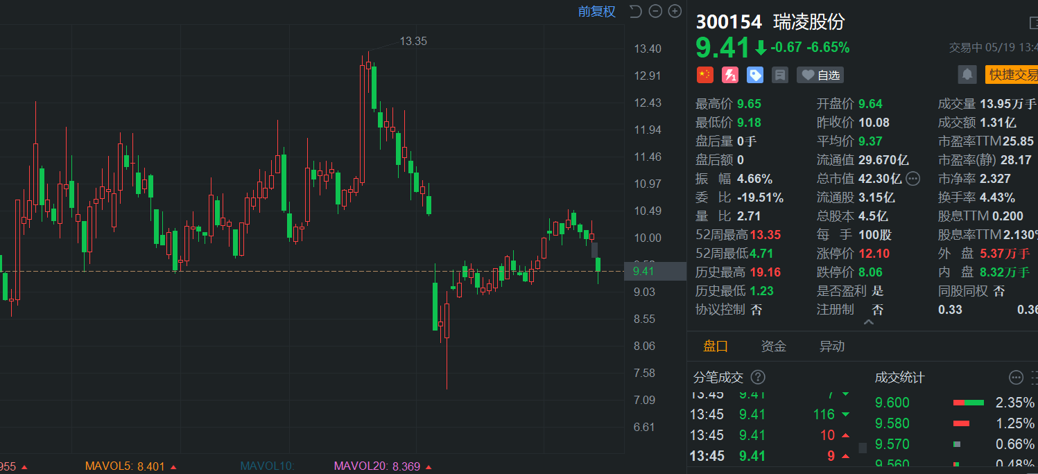 瑞凌股份(300154.SZ)现跌6.6%报9.4元,总市值42.3亿元。消息上,瑞凌股份发布股份减持公告,股东成军,深圳市理涵投资咨询有限公司,潘文拟减持公司股份不超过1370.97万股,减持比例不超过公司总股本的3.05%。此前公布的24年度营业总收入为10.15亿元,同比下滑11.73%;扣非净利润同比减少超41%。