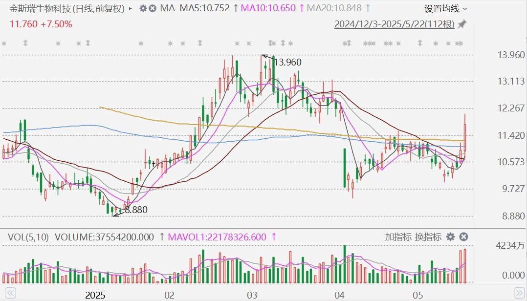 金斯瑞生物(1548.HK)逆势上涨,盘中一度涨超10%,报12.08港元,股价创4月3日以来新高。消息面上,金斯瑞生物与涛烜科学达成战略合作,结合单B细胞高通量筛选技术与金斯瑞的抗体开发服务平台,推出“端到端”抗体发现解决方案,以缩短研发周期、降低成本,提升全球生物医药企业研发效率。