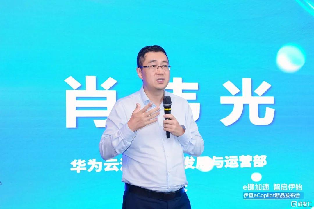 开幕致辞发布会由深圳市数字经济产业促进会会长肖智、华为云深圳生态发展与运营部部长肖伟光、伊登软件创始人&董事长丁新云致开幕辞。