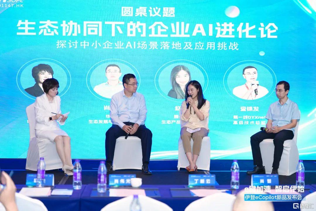 在随后的发布会环节中,丁董宣布eCopilot正式发布,并介绍了发布的主要内容,包括海外eCopilot SaaS网站上线,推出WPS AI 助手,eCopilot上架华为云商店,易AI企业智能助手上架腾讯云应用、华为云商城等。她表示,eCopilot应用范围广阔,市场潜力巨大,组件齐全,功能强大,为企业开启Office智慧办公新范式。