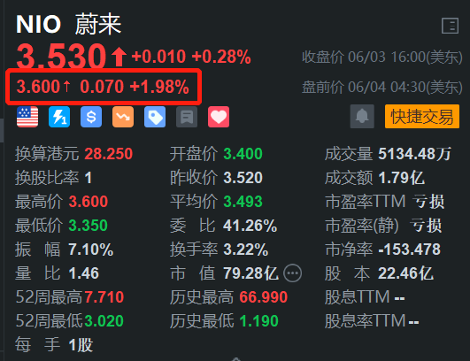 蔚来(NIO.US)盘前涨近2%。消息上,蔚来日前公布2025年第一季度总收入同比增长21% ,达到人民币120.35亿元。展望2025年第二季度,蔚来预计交付量将在7.2万至7.5万台之间 ,同比增长约25.5%至30.7% ,环比增长71%至78% 。营收指引为人民币195.13亿元至200.68亿元 ,同比增长11.8%至15.0%。