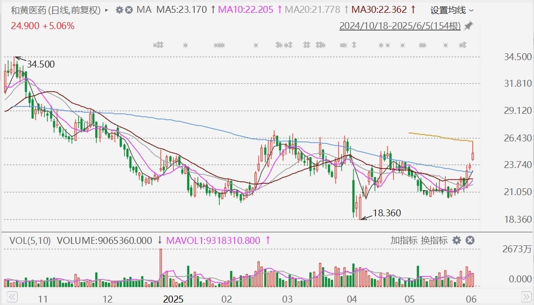 和黄医药(0013.HK)盘中拉升,一度涨近10%,报26港元,截至目前成交2.2亿港元。