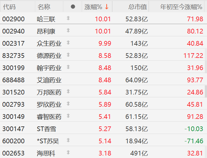 A股市场创新药概念股继续活跃,其中,哈三联、昂利康、众生药业涨停,德源药业、翰宇药业、艾迪药业涨超8%,万邦药业、罗欣药业、睿智医药涨超5%。消息面上,中办、国办印发《关于进一步保障和改善民生 着力解决群众急难愁盼的意见》提出,完善基本医疗保险药品目录调整机制,制定出台商业健康保险创新药品目录,更好满足人民群众多层次用药保障需求。机构称政策有望迎来显著边际变化,2025年预计成为创新药政策落地转折年。