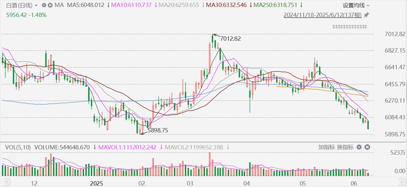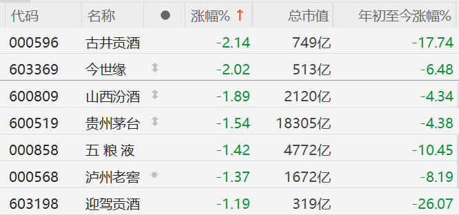 A股市场白酒股集体下跌,其中,古井贡酒、今世缘跌超2%,山西汾酒、贵州茅台、五粮液、泸州老窖、迎驾贡酒跌超1%。值得注意的是,随着近期白酒股的持续下跌,白酒指数创出4个月新低。消息面上,今日酒价披露的最新批发参考价显示,25年飞天茅台原箱报2050元/瓶,较前一日下跌30元;25年飞天茅台散瓶报1980元/瓶,较前一日下跌10元/瓶;24年飞天茅台原箱报2100元/瓶,较前一日下跌15元,24年飞天茅台散瓶报2010元/瓶,较前一日下跌20元。