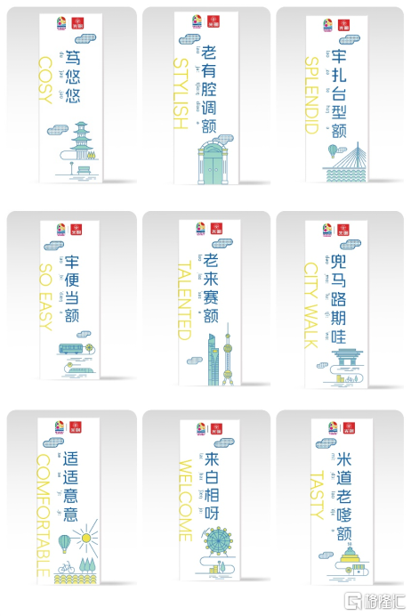 礼盒设计也暗藏巧思,外包装以放大版"光明棒冰"为灵感,打开瞬间仿佛推开一扇通往上海文化的窗口。更具创意的是,内盒采用盲盒形式,九大款式对应九句鲜活有趣的沪语,从经济、文化、生态、科技、美食等九大维度解码魔都魅力。这种设计不仅为消费注入了拆盲盒的期待感,更让每一次品尝棒冰的过程都成为一场探索上海文化的独特旅程,使光明冷饮从消暑佳品升级为承载城市文化的"移动名片"。例如,"老有腔调额"搭配外滩建筑插画,并标注沪语音标与英译,让外国游客也能读懂百年建筑里流淌的历史韵味;"老来塞额"则指向陆家嘴金融城,这句意为"超厉害"的地道方言,精准道出了这片土地上涌动的经济活力。