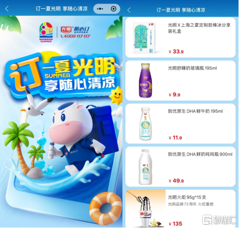 为了让这份清凉与文化触手可及,光明随心订还特别开设"上海之夏"专属"夏日小铺",让市民与游客足不出户即可选购光明冷饮、鲜奶、益生菌粉等夏日好物。此外,在 "上海之夏"开幕式上,光明莫斯利安星厨系列酸奶作为"冰夏之礼"亮相,以轻盈口感开启盛夏狂欢。