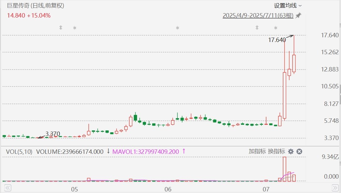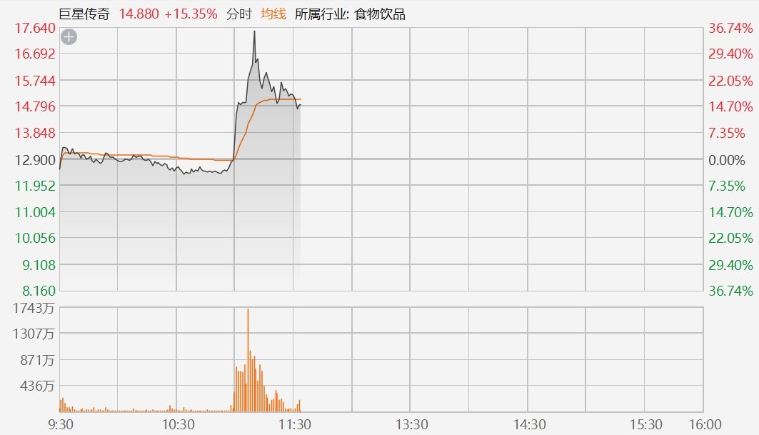 巨星传奇(6683.HK)从11点开始出现一波快速拉升,一度冲高涨36.74%,报17.64港元,股价创历史新高,市值超150亿港元。自周杰伦宣布入驻抖音以来,该股累涨近250%,市值一度增108亿港元。