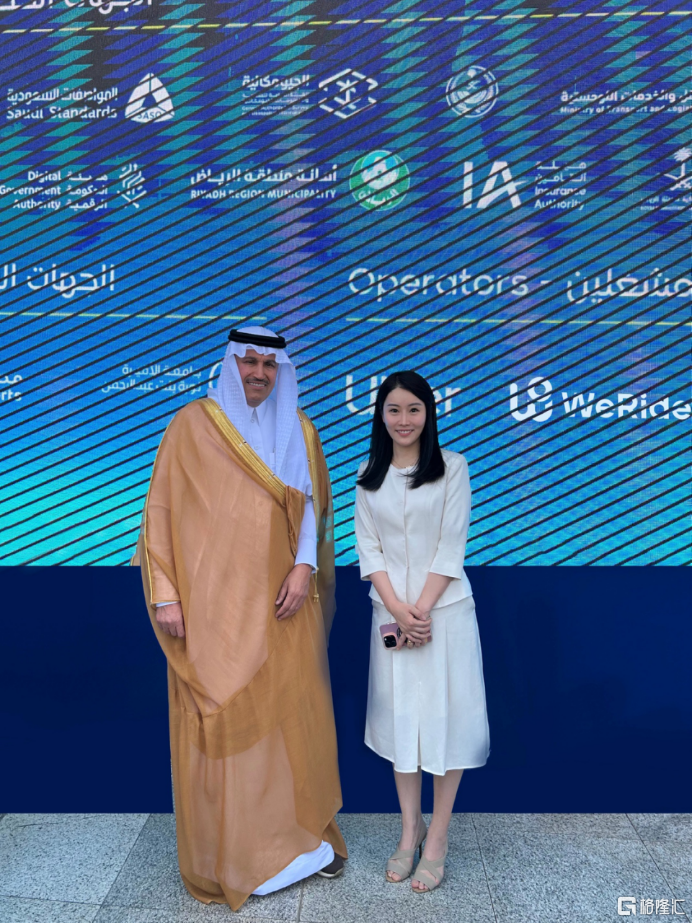 沙特交通与物流部长H.E. Eng. Saleh Al-Jasser阁下和文远知行CFO兼国际负责人李璇合影