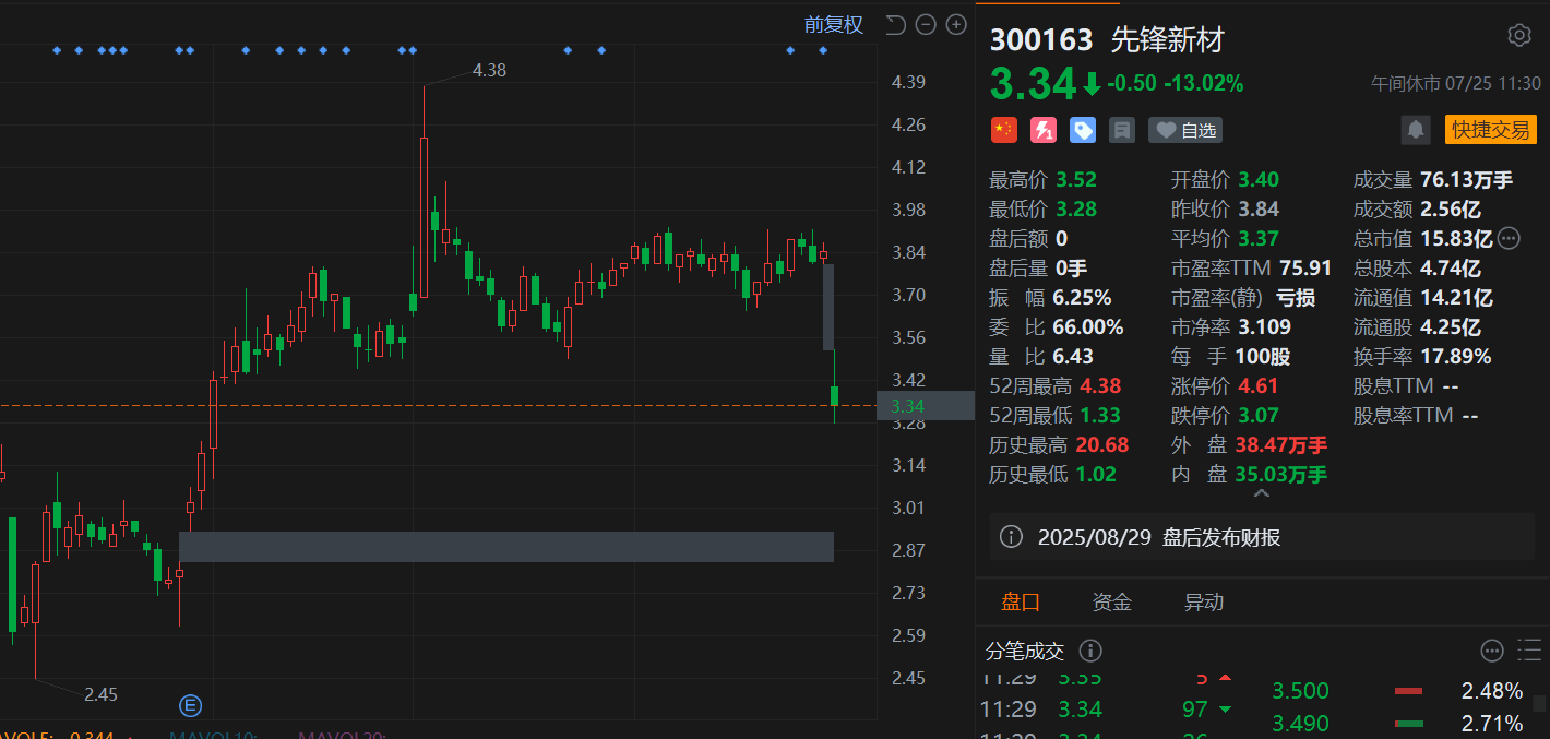 先锋新材(300163.SZ)午间大幅收跌13%,报3.3元,市值不足16亿元。消息上,先锋新材昨日盘后公告,公司及前控股股东、实际控制人卢先锋先生近日收到中国证监会下发的立案告知书。因涉嫌信息披露违法违规,中国证监会决定对公司及卢先锋先生立案。