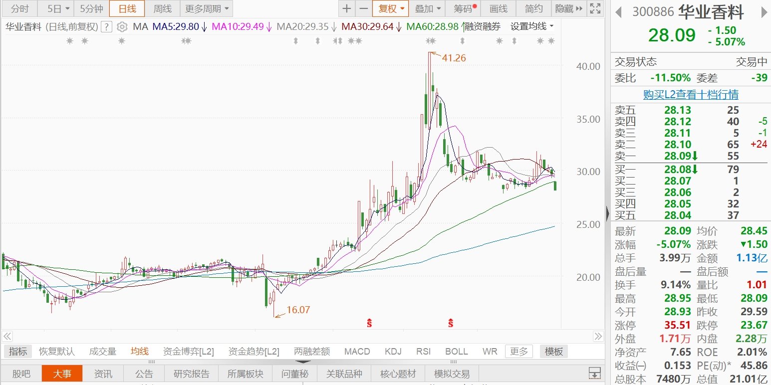 华业香料(300886.SZ)跌超5%,报28.09元,总市值21.01亿元。华业香料公告称,公司控股股东、实际控制人、董事长华文亮计划在本公告披露之日起15个交易日后的三个月内拟减持公司股份不超过2,243,940股(占公司当前总股本的3%)。其中,通过集中竞价交易方式减持公司股份的数量不超过公司当前总股本的1%,通过大宗交易方式减持公司股份的数量不超过公司当前总股本的2%。(格隆汇)
