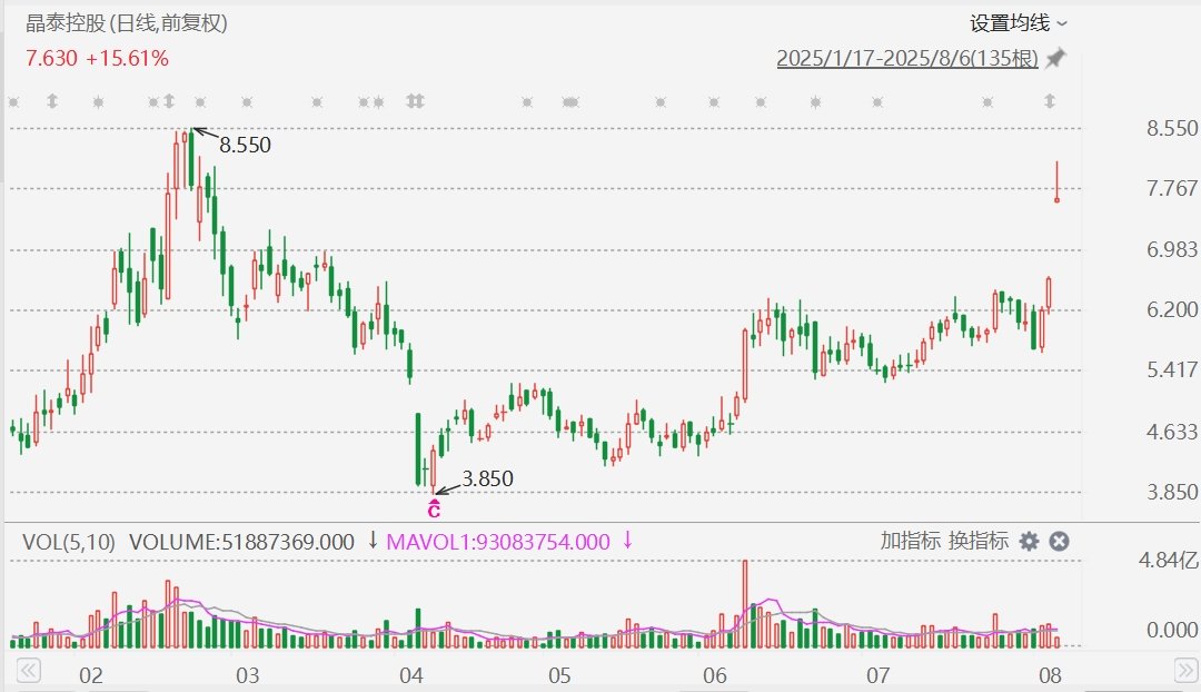 晶泰控股(2228.HK)盘初飙升近23%,报8.1港元,股价创2月25日以来新高。消息面上,晶泰科技8月5日宣布与DoveTree完成总订单规模约470亿港元(59.9亿美元)的管线合作签约,并已收到协议约定的首付款约4亿港元(5100万美元)。
