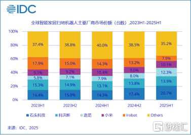 9月3日,国际数据公司IDC发布《全球智能家居清洁机器人设备市场季度跟踪报告》。报告预计,2025年全球智能家居清洁机器人市场出货3210万台,市场规模稳步扩容。2025上半年石头科技不仅以15.2%的市场份额领跑全球清洁机器人领域,更在核心的扫地机人品类中拿下20.7%的市场份额,稳居全球第一。