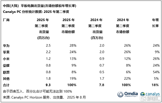 平板电脑市场同样表现亮眼,出货量同比增长18%,本季度总计910万台,但竞争加剧。联想通过Tab系列产品,瞄准游戏玩家、创作者和休闲用户,以AI功能和规格升级作为差异化卖点,实现了54%的年度增长率,市场占有率增至8%。