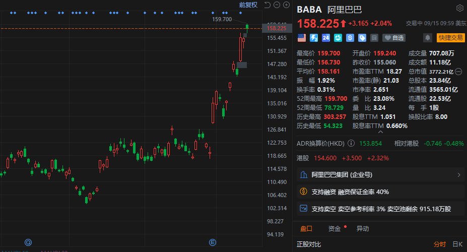 阿里巴巴美股涨超2%,股价创2021年12月以来新高,该股月内累涨超17%。2025云栖大会将于9月24日-26日在杭州召开,值得期待。