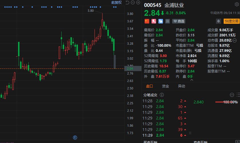 金浦钛业(000545.SZ)一字板跌停,报2.84元创一个半月新低,并且录得7连跌行情,总市值跌破30亿元。消息上,金浦钛业公告,综合近期市场环境变化等因素,现阶段继续推进重大资产重组事项不确定性较大,公司决定终止重大资产置换、发行股份及支付现金购买资产并募集配套资金暨关联交易事项。此前,金浦钛业拟通过此次重大资产重组,取得利德东方100%股权,退出钛白粉行业,进军橡胶制品业。