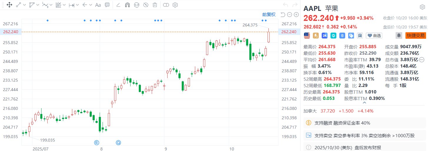 苹果(AAPL.US)收涨3.94%,报262.24美元刷历史新高,总市值达3.89万亿美元,超越微软成为美国第二大市值公司,仅次于英伟达。有分析称,近期苹果股价走强主要受最新iPhone系列需求超预期带动,引发外界对期待已久的换机潮的乐观预期。投资者尤其关心,那些在疫情期间购买新iPhone、但之后多年未升级的消费者,是否会重新回到苹果门店购买新机。