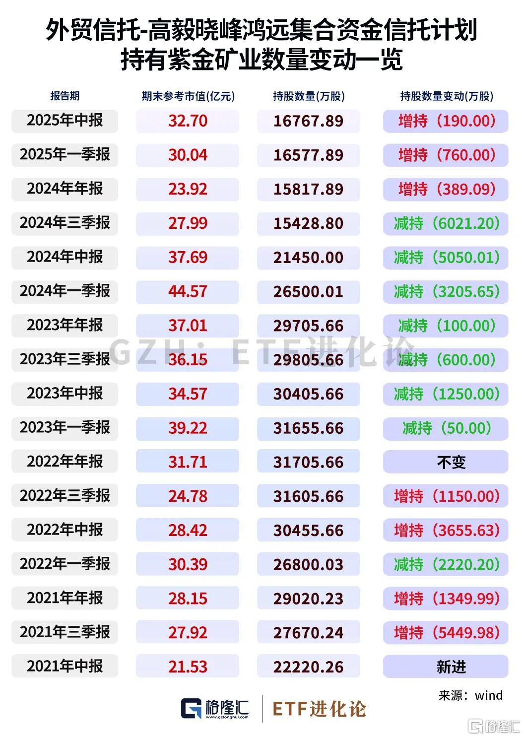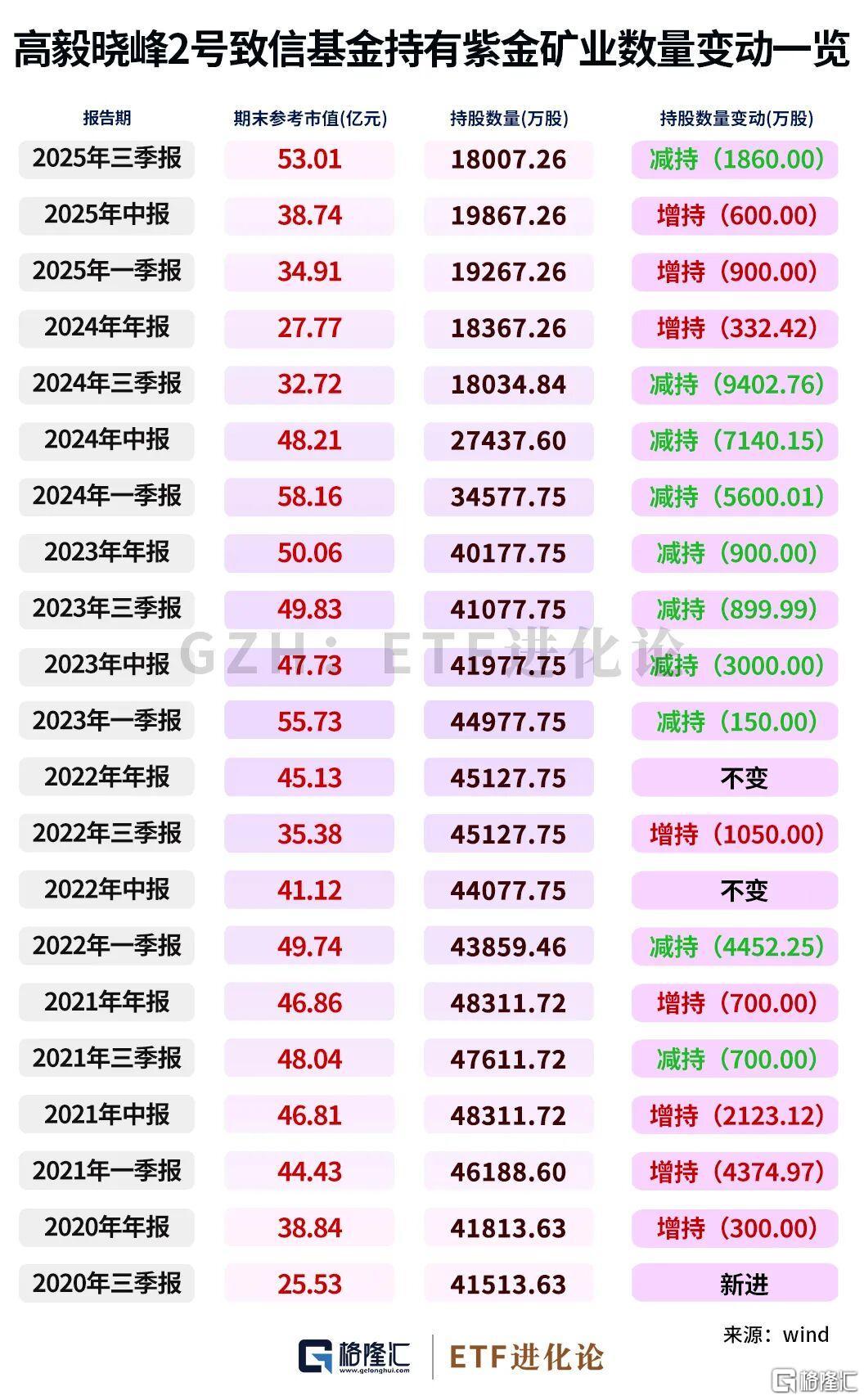 从紫金矿业最新披露的三季报来看,晓峰2号致信三季度减持了1860万股。