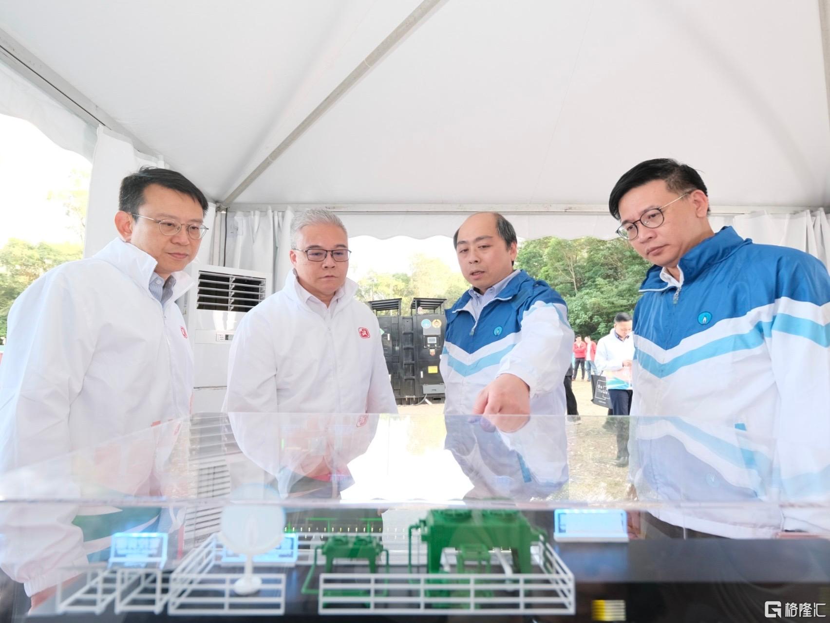 机电工程署署长潘国英率领署方团队到现场,了解香港首个一体化氢能发电机的运作和安全设施,又与煤气公司营运总裁—香港业务郑晓光交流本港氢能发展。