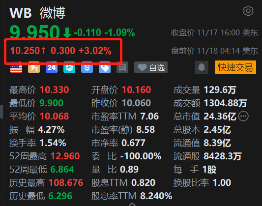微博(WB.US)盘前涨3%报10.25美元。消息上,微博2025年第三季度净收入4.42亿美元,同比下降5%;广告收入3.75亿美元,同比下降6%;非GAAP净利润1.11亿美元,同比下降20%。来自阿里巴巴广告收入4550万美元,同比激增112%;微博智搜保持强劲增长势头。另外,据悉微博正式发布首个自研开源大模型Vibe Thinker。