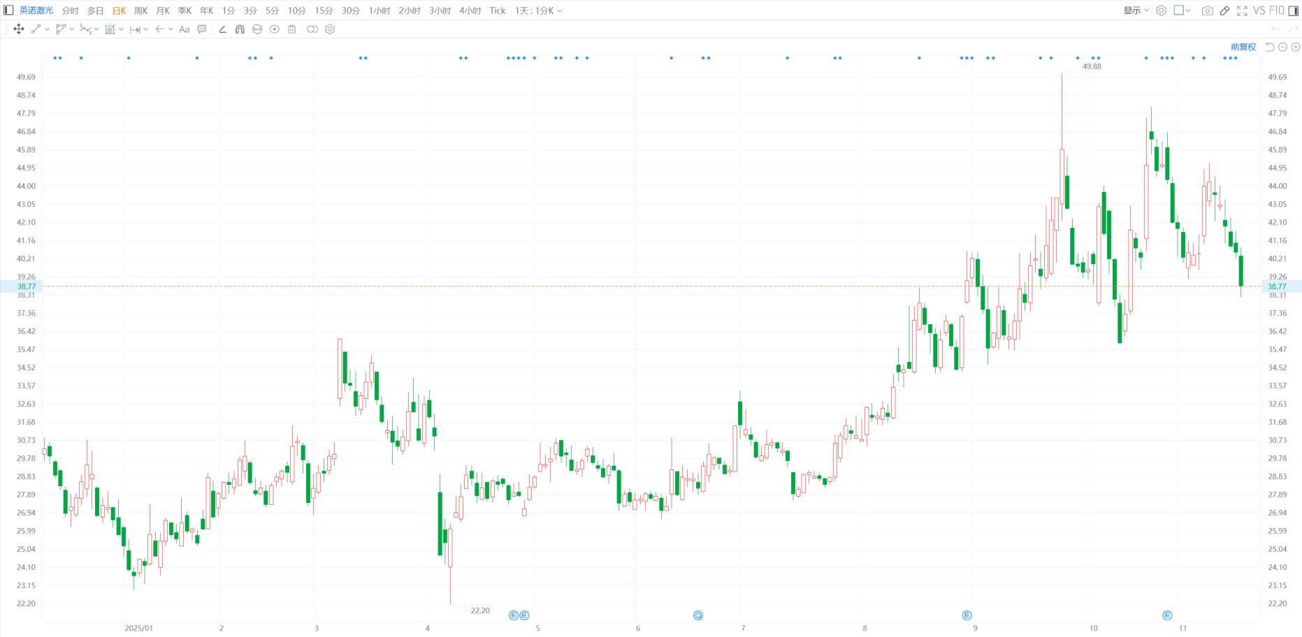 英诺激光(301021.SZ)盘中一度跌5.77%至38.2元,股价创10月22日以来近一个月新低。英诺激光公告,公司董事长兼总经理ZHAO XIAOJIE、董事LIN DEJIAO、董事兼财务总监陈文、董事会秘书兼副总经理张勇减持计划已实施完毕;ZHAO XIAOJIE于2025年11月7日至2025年11月14日集中竞价减持1.47万股,减持均价43.38元;LIN DEJIAO于2025年8月29日至2025年9月1日减持0.23万股,减持均价39.7元;陈文于2025年9月17日至2025年9月22日减持0.58万股,减持均价41.98元;张勇于2025年11月10日至2025年11月14日减持0.10万股,减持均价43元;合计减持2.38万股,占总股本0.0156%。(格隆汇)