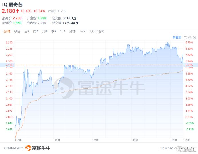 11月18日盘后,爱奇艺发布2025年第三季度财报,核心数据的稳健表现迅速传导至资本市场。财报发布当日美股开盘后,爱奇艺股价持续攀升,最终以6.34%的涨幅收盘。