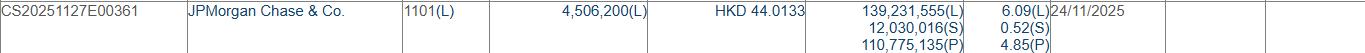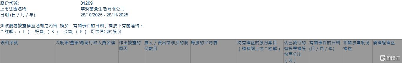 格隆汇11月28日丨根据联交所最新权益披露资料显示,2025年11月24日,华润万象生活(01209.HK)获JPMorgan Chase & Co.以每股均价44.0133港元增持好仓450.62万股,涉资约1.98亿港元。