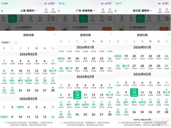 同程旅行平台上,正在推出旅游冰雪季特惠,最高可领取600元东北红包、1500元欧洲红包等。俄罗斯、挪威、芬兰和冰岛都是热门的出境玩雪目的地。"9天7晚圣彼得堡+莫斯科+俄罗斯+谢镇+冬宫+克宫+夏宫花园跟团游""9天7晚·摩尔曼斯克+莫斯科+圣彼得+萨米村+追光之旅+摩尔曼跟团游""8天6晚·春节热卖免签俄罗斯莫斯科+尔曼斯克双城4飞8日三次追光体验"都是热门线路,热门团期主要集中在明年1月和2月。相较于其他北欧国家的极光路线,俄罗斯的性价比尤为突出,成本可低至一半甚至以上。