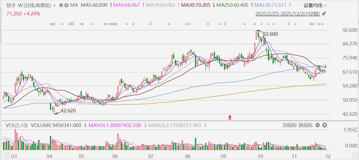 快手-W(1024.HK)盘初拉升,大涨超5%,报71.95港元。消息面上,12月1日,可灵AI正式发布其全新产品“可灵O1”,定位为首个大一统的多模态创作工具。可灵O1基于全新的视频和图像模型,整合文字、视频、图片、主体等多模态输入,将所有生成和编辑任务融合于一个全能引擎之中。可灵O1的推出,彻底解决了AI视频生成中角色、场景等一致性难题,为影视、自媒体、广告电商等应用场景,提供了深度适配的一站式解决方案。