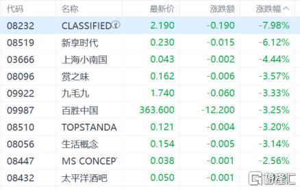 餐饮股走低,上海小南国跌超4%,九毛九、百胜中国跌超3%。