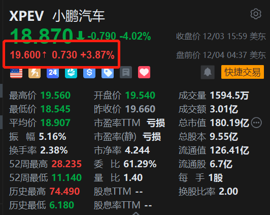 连续下跌的小鹏汽车(XPEV.US)有望终止连跌行情,盘前涨近4%报19.6美元。消息上,小鹏汽车宣布,小鹏X9超级增程正式全球首发搭载华为DriveONE下一代增程发电机。这是华为面向高压纯电平台开发的全栈高集成油冷发电机首次量产上车。作为鲲鹏超级增程系统核心部件,其与小鹏自研800V高压架构协同,支撑X9实现1602km综合续航。