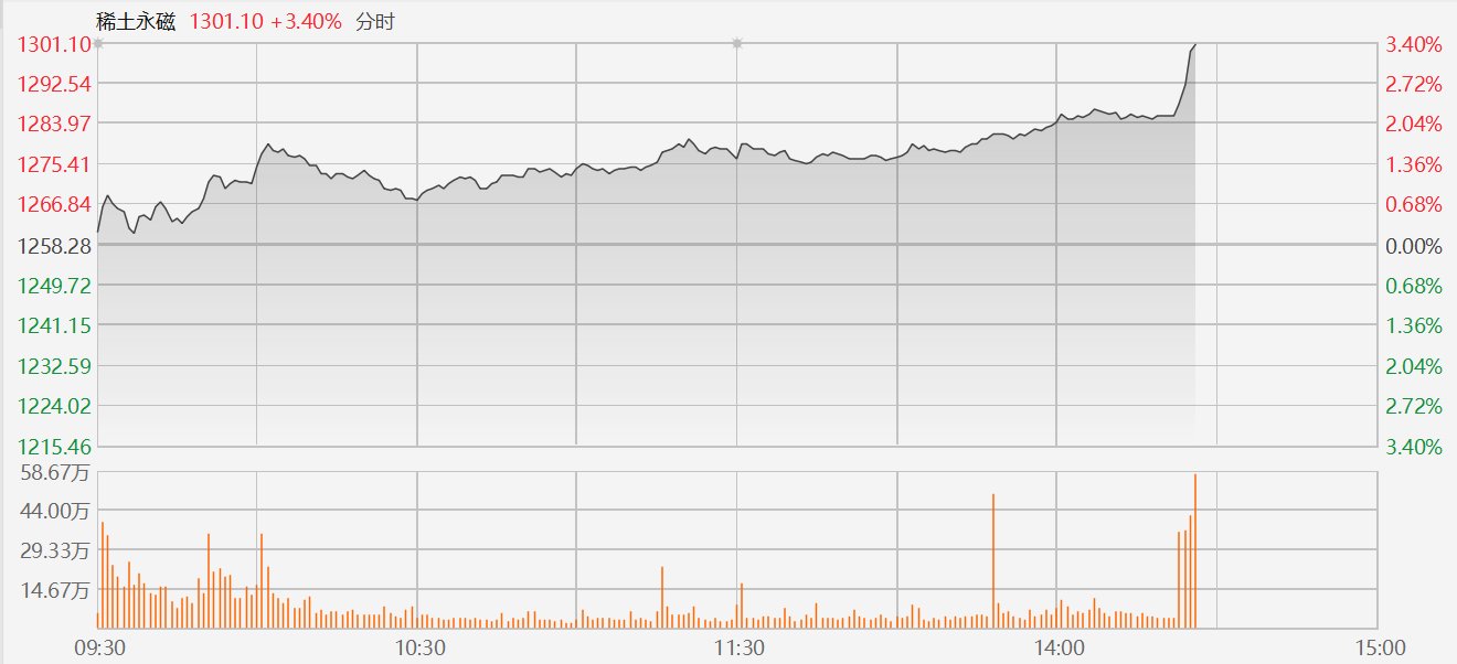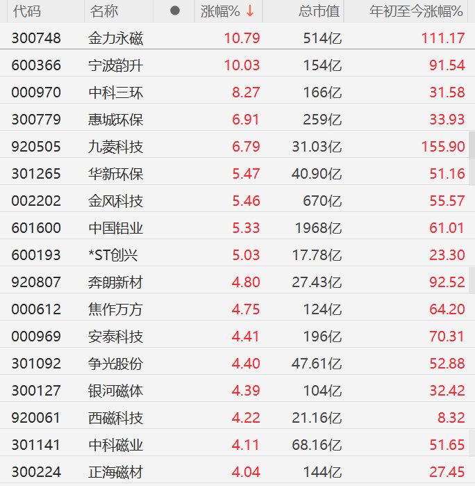 A股市场稀土股拉升,其中,金力永磁涨超14%,宁波韵升拉升封板,中科三环一度触及涨停,惠城环保、九菱科技、银河磁体、西磁科技、中科磁业等跟涨。有消息称,金力永磁、中科三环、宁波韵升已获得通用出口许可证。有业内人士表示,通用许可证的应用将简化稀土永磁企业出口流程,加快交付速度,利于稀土永磁行业下游需求恢复。