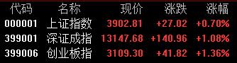 12月5日,A股三大指数午后集体拉升走高。截至收盘,沪指涨0.7%报3902点,深证成指涨1.08%,创业板指涨1.36%。全市场成交额1.74万亿元,较前一交易日增量1773亿元,近4400股上涨。