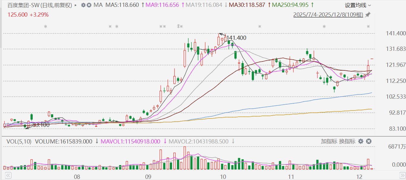 继上周五收涨5%后,百度集团-SW(9888.HK)今日再度高开3.29%,报125.6港元。消息面上,百度集团昨晚在港交所公告,有媒体报道公司拟分拆非全资附属公司昆仑芯(北京)科技有限公司进行独立上市。公司谨此澄清,目前正就拟议分拆及上市进行评估。倘进行拟议分拆及上市,将须经相关监管审批程序,而公司并不保证拟议分拆及上市将会进行。